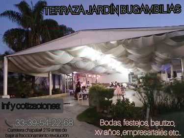 En Terraza Bugambilias nos especializamos en ofrecer espacios versátiles que se adapten a tu celebración. Nuestro compromiso es brindarte instalaciones cómodas, seguras y elegantes, con servicios que faciliten tu organización y te permitan disfrutar sin preocupaciones. Nos adaptamos a tu estilo, tu evento y tu presupuesto.