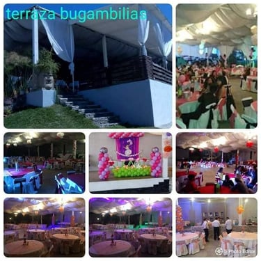 En Terraza Bugambilias encontrarás el escenario ideal para tus celebraciones. Contamos con dos terrazas independientes, diseñadas para diferentes tipos de eventos: una terraza con alberca perfecta para reuniones familiares, cumpleaños y fiestas infantiles, y una terraza premium ideal para bodas, XV años, eventos empresariales y celebraciones de mayor formalidad. Tú eliges el espacio; nosotros hacemos que tu evento sea inolvidable.