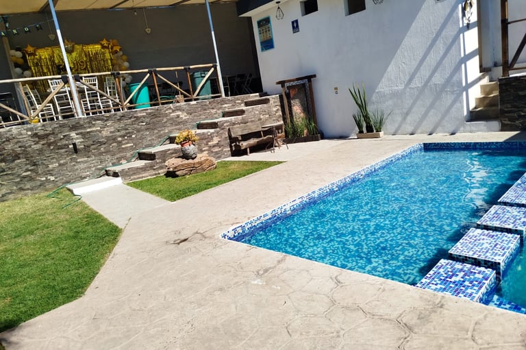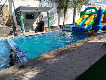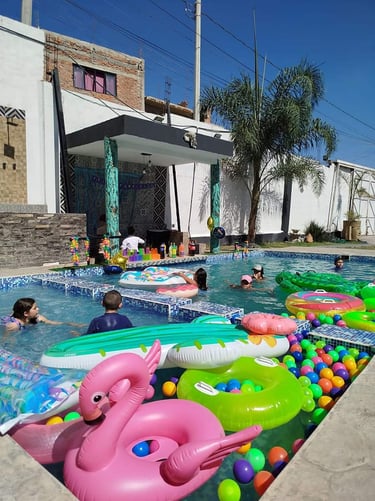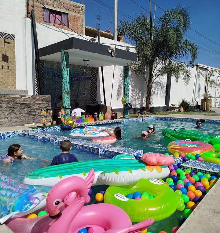 Celebramos el cumpleaños de mi hijo y la alberca fue el lugar favorito de todos los niños.